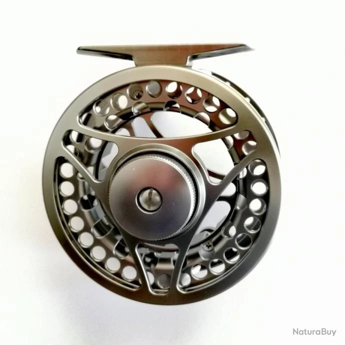 Moulinet large arbor (82mm) en acier aéronautique, frein micrométrique de précision pour soie de 3/5. Poids : 133grs livré avec sa housse néoprène